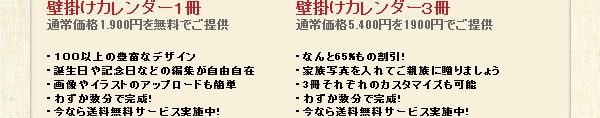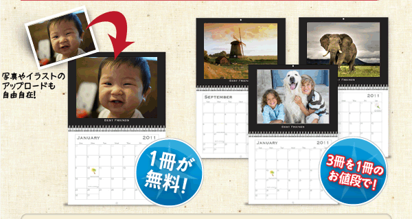 | カレンダー1冊を制作費無料!、または1冊のお値段で3冊ご提供! | |||